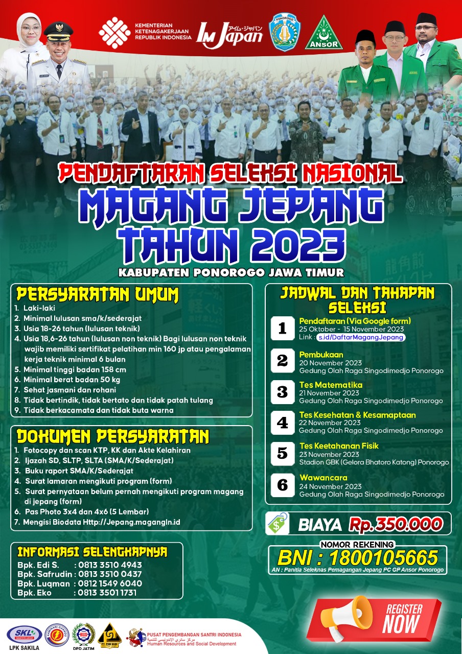 Pemerintah daerah kabupaten Ponorogo mengadakan Bimtek seleksi nasional magang kejepang...
