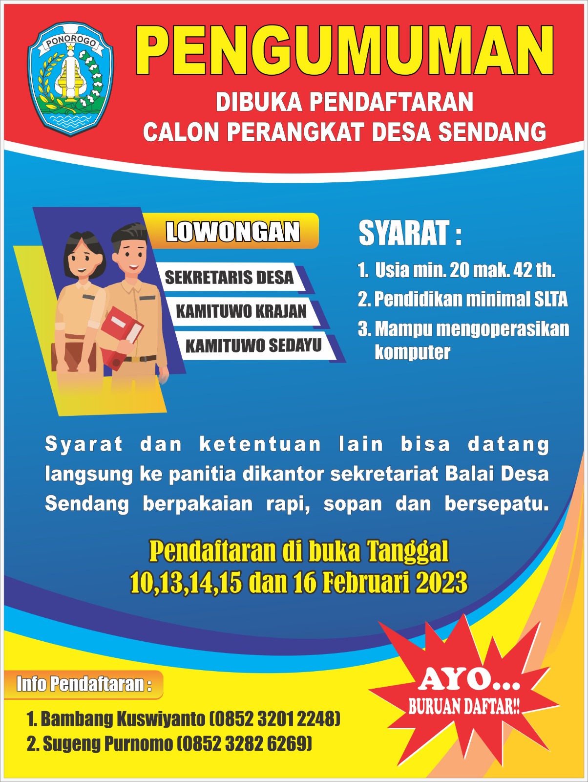 PENGUMUMAN PENDAFTARAN PERANGKAT DESA SENDANG